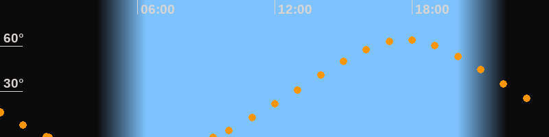 Höchster Stand (Kulmination)17:42 Uhr (h = 64.4°)