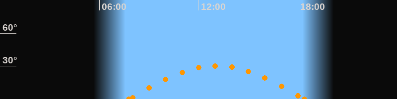 Höchster Stand (Kulmination)13:05 Uhr (h = 30.2°)
