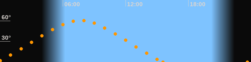 Höchster Stand (Kulmination)07:38 Uhr (h = 60.5°)