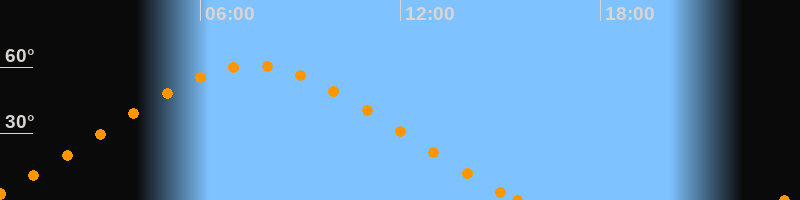 Höchster Stand (Kulmination)07:34 Uhr (h = 60.8°)