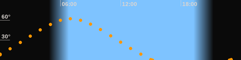 Höchster Stand (Kulmination)07:00 Uhr (h = 62.2°)