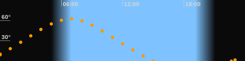 Höchster Stand (Kulmination)06:53 Uhr (h = 62.4°)