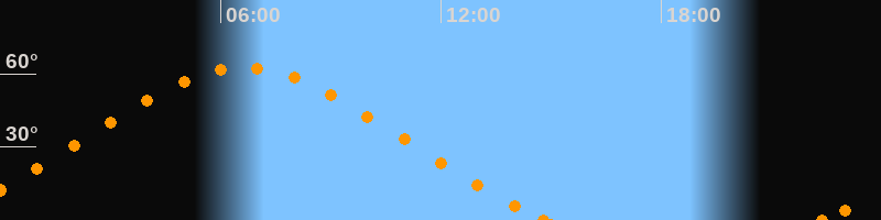 Höchster Stand (Kulmination)06:36 Uhr (h = 62.6°)