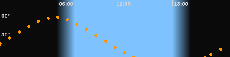 Höchster Stand (Kulmination)05:42 Uhr (h = 63°)