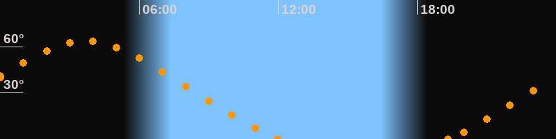 Höchster Stand (Kulmination)03:41 Uhr (h = 63.6°)