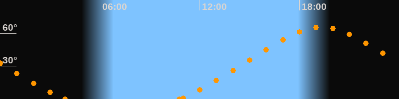 Höchster Stand (Kulmination)19:19 Uhr (h = 65.5°)