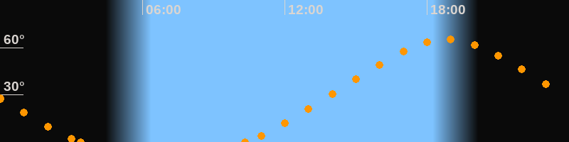 Höchster Stand (Kulmination)18:50 Uhr (h = 65.2°)