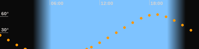 Höchster Stand (Kulmination)18:45 Uhr (h = 63.4°)