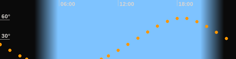 Höchster Stand (Kulmination)18:29 Uhr (h = 62.5°)