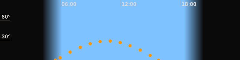 Aufgang05:30 Uhr im Osten (αAz = 106.1°)