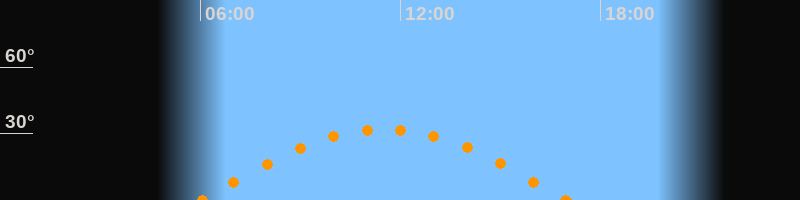 Höchster Stand (Kulmination)11:30 Uhr (h = 32°)