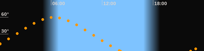 Höchster Stand (Kulmination)06:18 Uhr (h = 59.6°)
