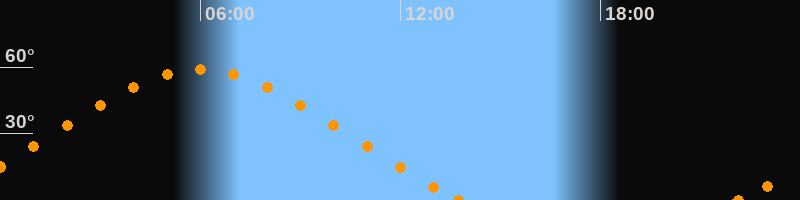 Höchster Stand (Kulmination)05:59 Uhr (h = 58.9°)