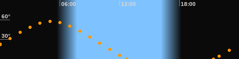 Höchster Stand (Kulmination)05:06 Uhr (h = 57.5°)