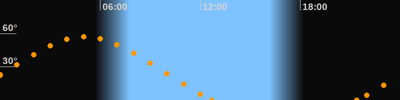 Höchster Stand (Kulmination)05:03 Uhr (h = 57.4°)