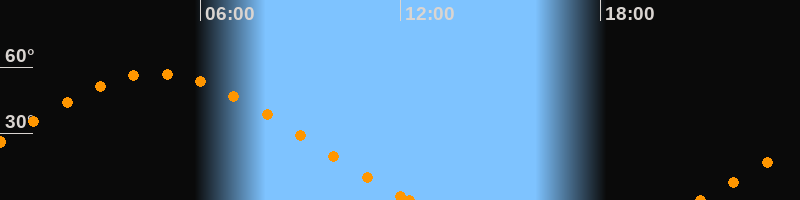 Höchster Stand (Kulmination)04:39 Uhr (h = 57.2°)
