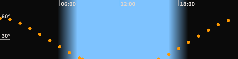 Höchster Stand (Kulmination)00:05 Uhr (h = 62.1°)