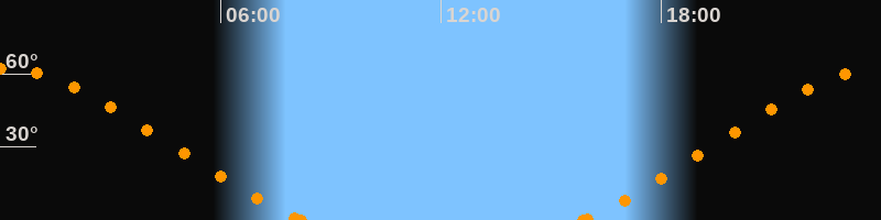 Höchster Stand (Kulmination)00:00 Uhr (h = 62.2°)