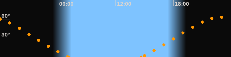 Aufgang14:38 Uhr im Nordosten (αAz = 49.7°)