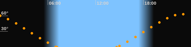 Aufgang14:38 Uhr im Nordosten (αAz = 49.7°)