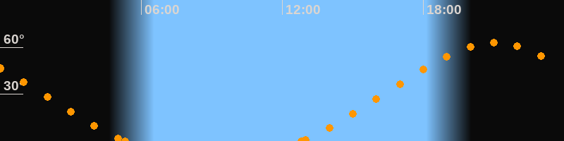 Höchster Stand (Kulmination)21:01 Uhr (h = 62.8°)