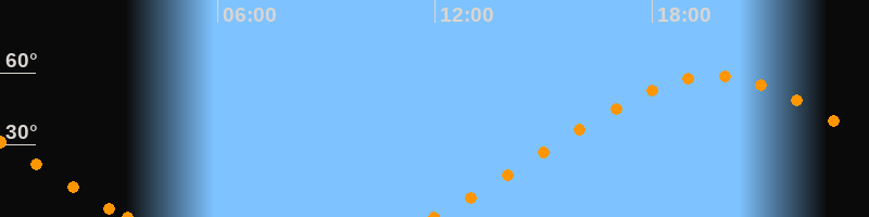 Höchster Stand (Kulmination)19:42 Uhr (h = 58.6°)