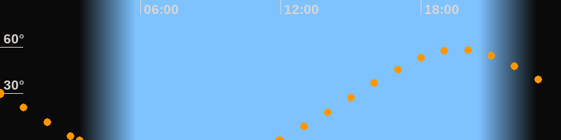Höchster Stand (Kulmination)19:37 Uhr (h = 58.3°)