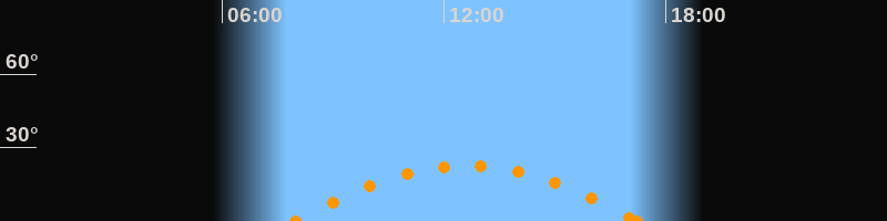 Höchster Stand (Kulmination)12:35 Uhr (h = 22.5°)