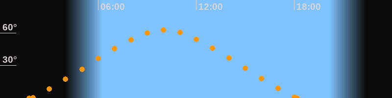 Höchster Stand (Kulmination)09:59 Uhr (h = 62.5°)