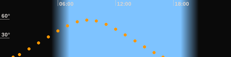 Höchster Stand (Kulmination)09:10 Uhr (h = 58.7°)