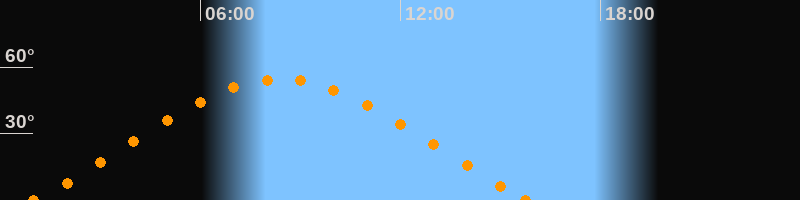 Höchster Stand (Kulmination)08:25 Uhr (h = 54.5°)