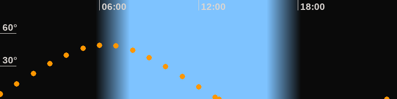 Höchster Stand (Kulmination)06:20 Uhr (h = 49.5°)