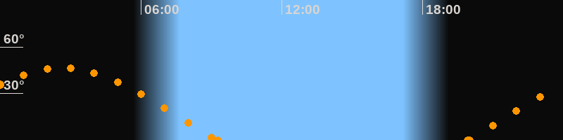 Höchster Stand (Kulmination)02:38 Uhr (h = 46.4°)