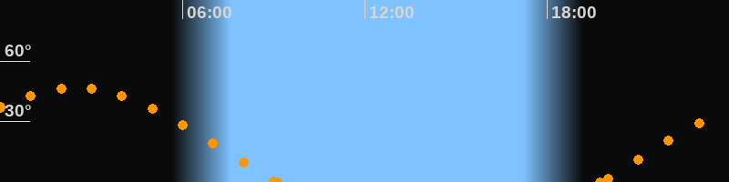 Höchster Stand (Kulmination)02:29 Uhr (h = 46.6°)
