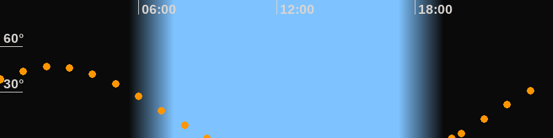 Höchster Stand (Kulmination)02:19 Uhr (h = 46.8°)