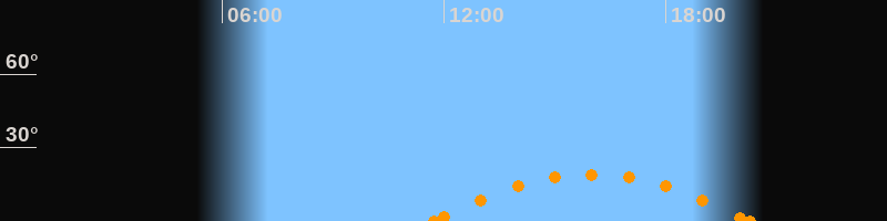 Höchster Stand (Kulmination)16:00 Uhr (h = 19°)