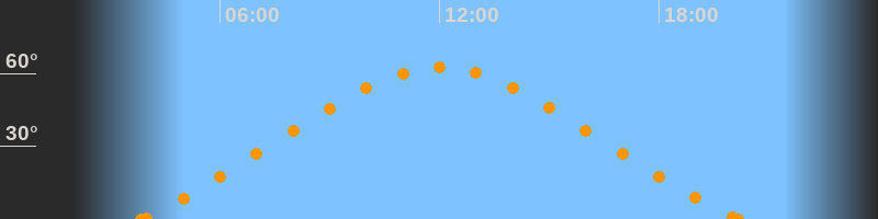 Höchster Stand (Kulmination)12:00 Uhr (h = 62.5°)