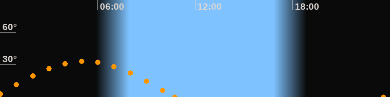 Höchster Stand (Kulmination)05:11 Uhr (h = 33.2°)