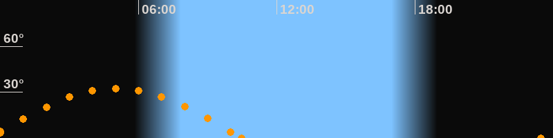 Höchster Stand (Kulmination)05:00 Uhr (h = 32.4°)
