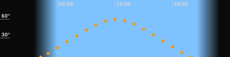 Höchster Stand (Kulmination)12:04 Uhr (h = 59.7°)