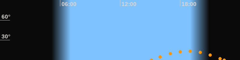 Höchster Stand (Kulmination)18:45 Uhr (h = 13.4°)
