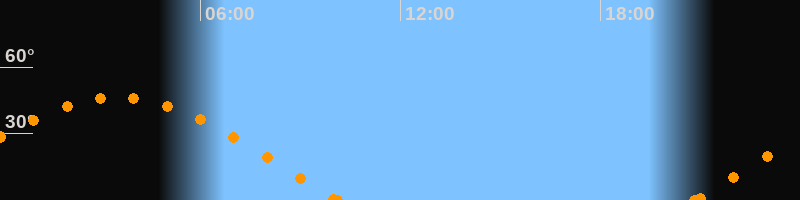 Höchster Stand (Kulmination)03:30 Uhr (h = 46.1°)