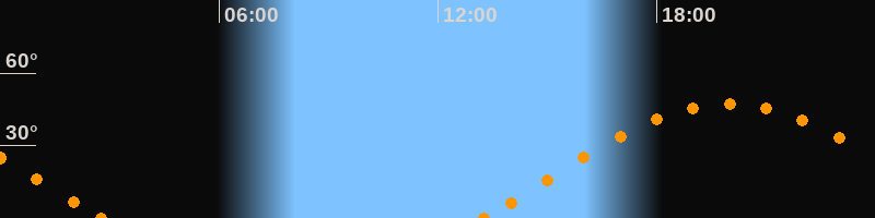 Höchster Stand (Kulmination)19:58 Uhr (h = 47.4°)