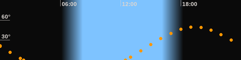 Höchster Stand (Kulmination)19:21 Uhr (h = 49.6°)