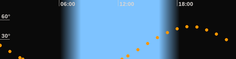 Höchster Stand (Kulmination)19:19 Uhr (h = 49.7°)