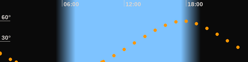 Höchster Stand (Kulmination)17:39 Uhr (h = 59.4°)