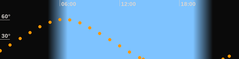 Höchster Stand (Kulmination)06:23 Uhr (h = 60.7°)