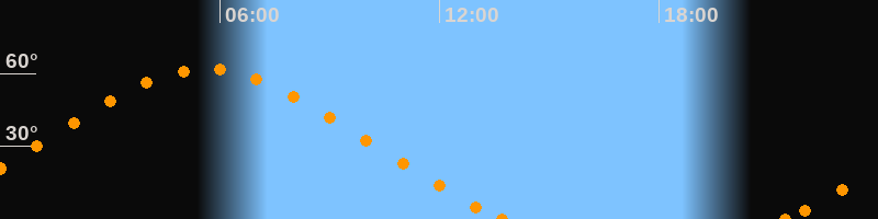 Höchster Stand (Kulmination)05:37 Uhr (h = 61.9°)