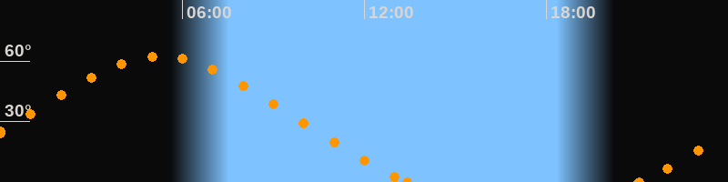 Höchster Stand (Kulmination)05:15 Uhr (h = 62.3°)