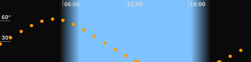 Höchster Stand (Kulmination)05:05 Uhr (h = 62.4°)